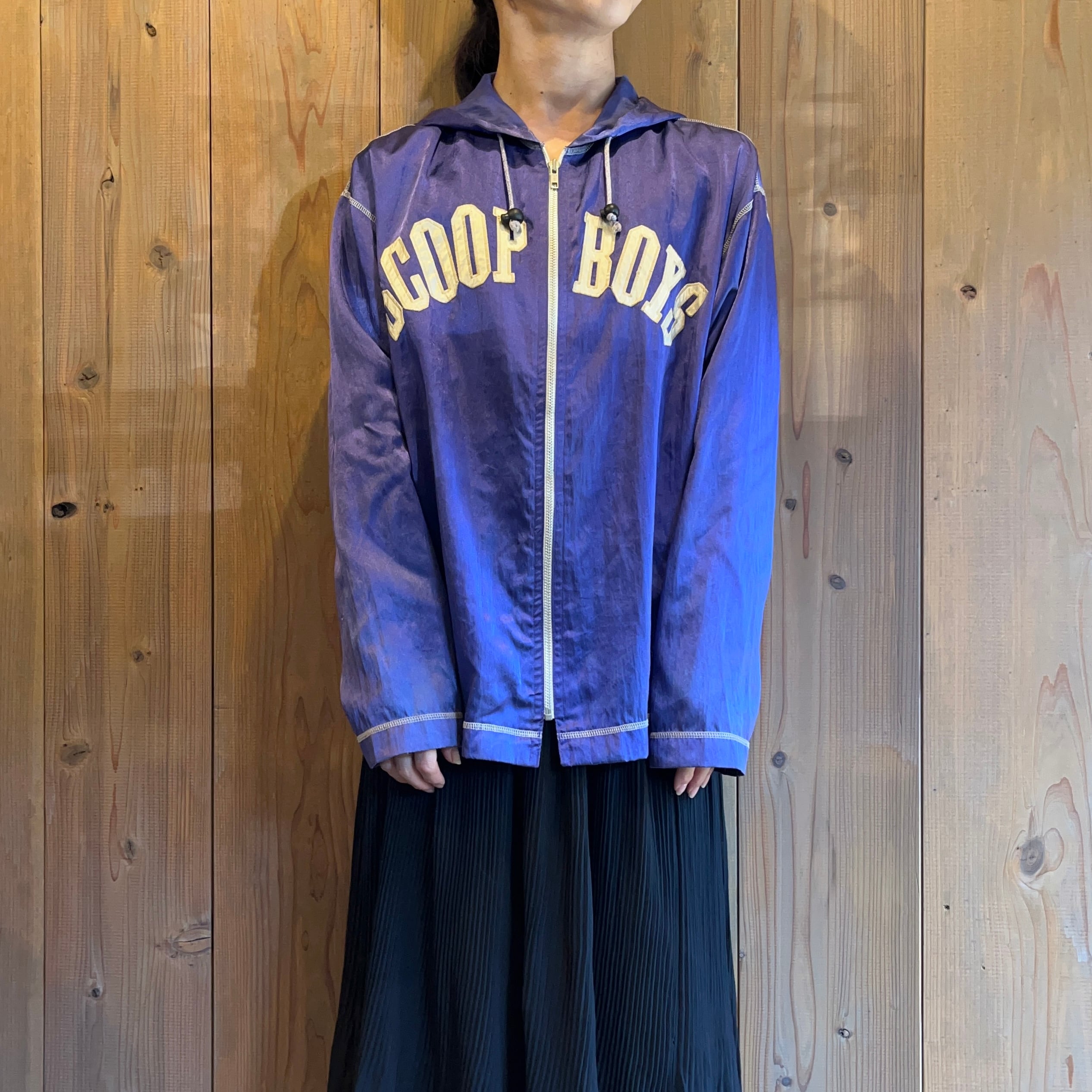 1980年代のSCOOP。メンズのサテンフーディーです。デザインの特徴から80年代前半の物と思われます。DCブランドブームの幕開け頃のお品ですね。もうあまり残っていないと思います。当時的でかわいいですね。